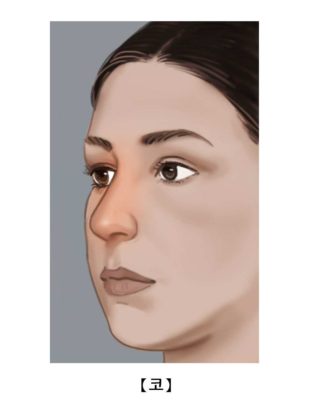 얼굴의 가운데에 돌출되어있는 기관으로 호흡과 후각기능을 담당합니다.