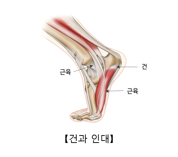 ② 순간적인 급격한 근육 수축으로 인해 건이 끊어지기도 합니다.(예 : 아킬레스건 손상)
